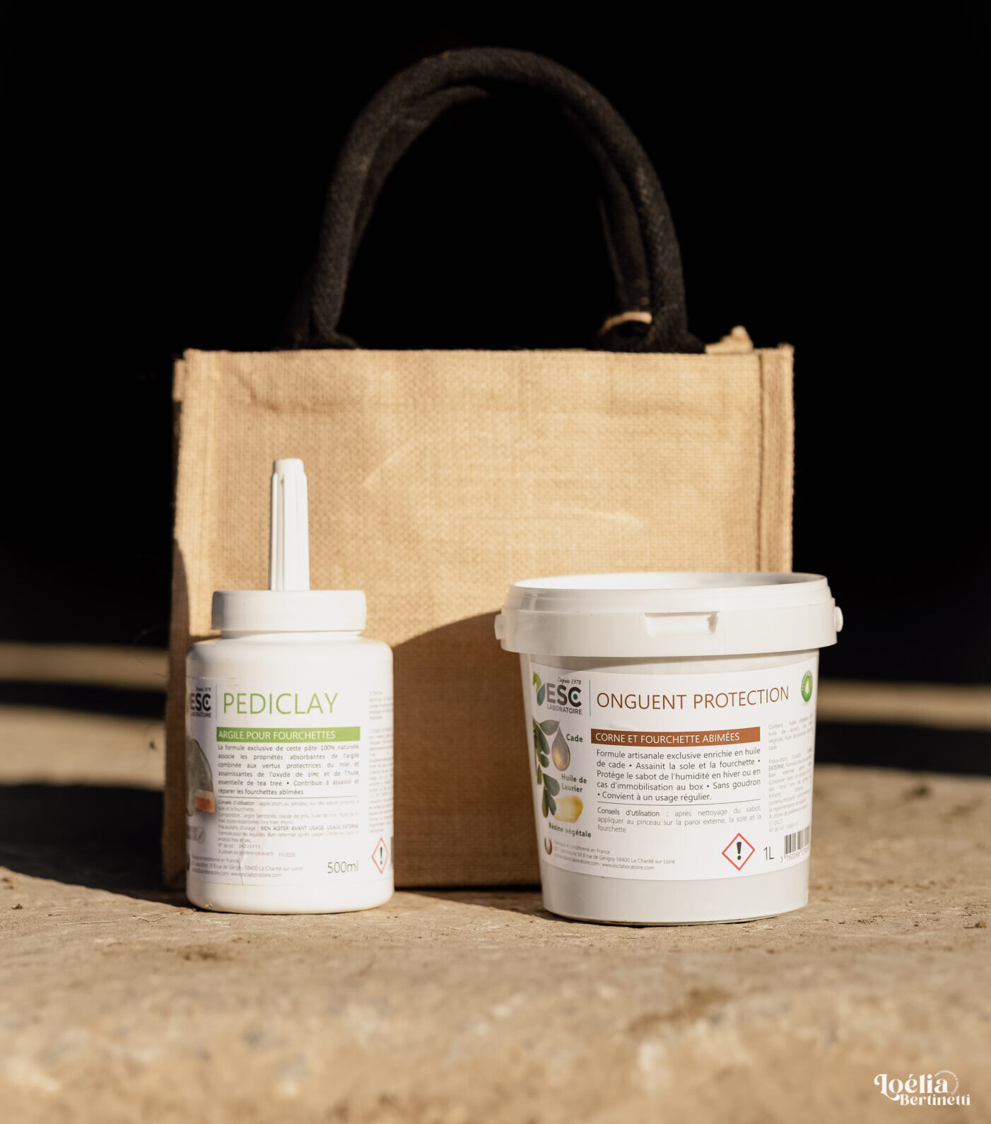 Profitez de notre Bag cadeau et de notre sélection de produits spécial soin des pieds de votre cheval : Onguent protection intersaison & Pediclay*